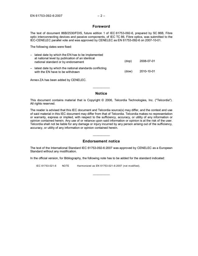 IEC-CENELEC parallel vote and was approved by CENELEC as EN 61753-092-6 on 2007-10-01.