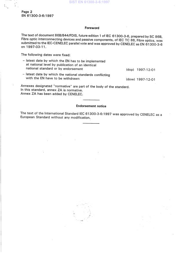 EN following parallel vote * Superseded by EN 61300-3-6:2003