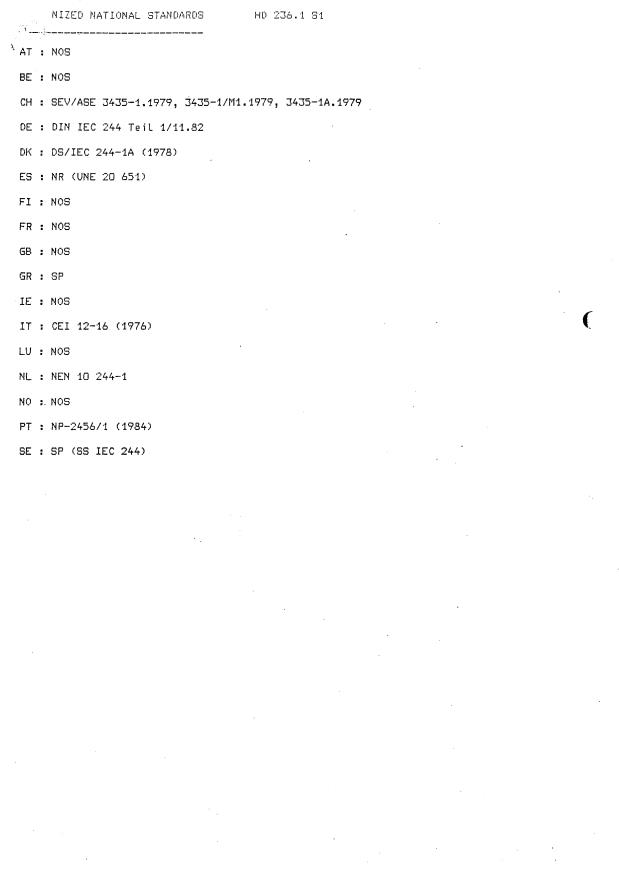 HD 236.1 S1:1977 has the following relationships with other standards: It is inter standard links to EN 60244-1:2000, HD 236.4 S2:1978, EN 60215:1989, HD 236.3 S1:1977, EN 60244-12-1:1993, EN 60244-11:1993, EN 60244-12-2:1993, EN 60244-13:1993, EN 60244-5:1994, EN 60244-9:1994, EN 60244-8:1994. Understanding these relationships helps ensure you are using the most current and applicable version of the standard.
