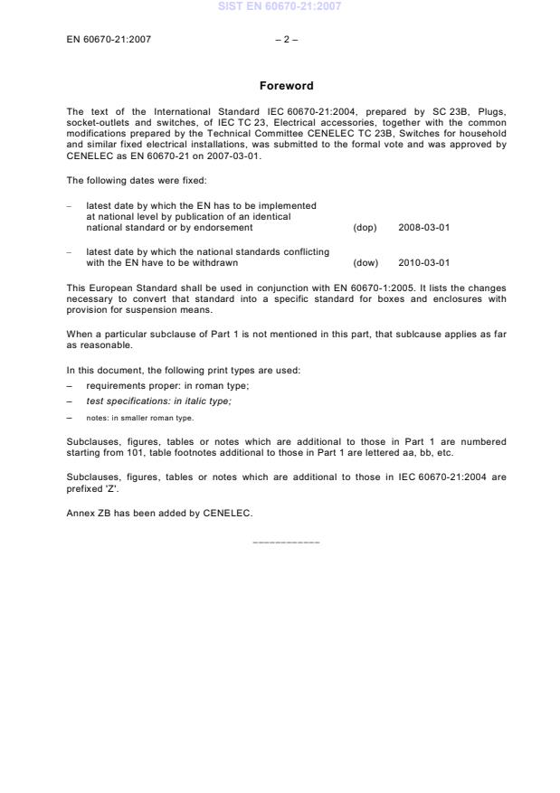 - EN 60670‑21 lists modifications and additions to EN 60670‑1; where not mentioned, Part 1 applies.