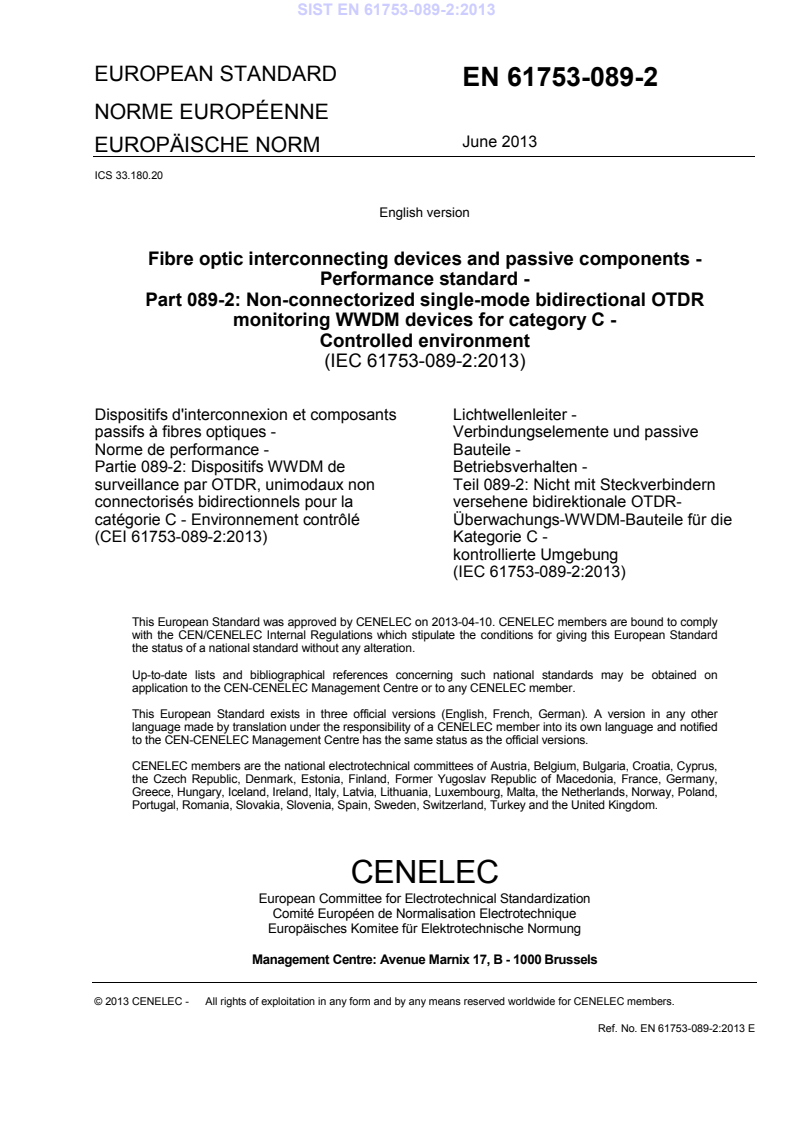 the IEC-CENELEC parallel vote and approved by CENELEC as EN 61753-089-2:2013.