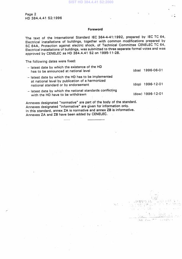 Evropski standard HD 384.4.41 S2:1996 in njegov dodatek HD 384.4.41 S2:1996/A1:2002 je pripravil