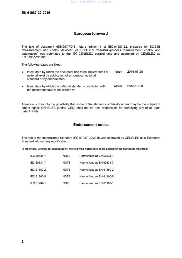 Ta slovenski standard je istoveten z: EN 61987-22:2016