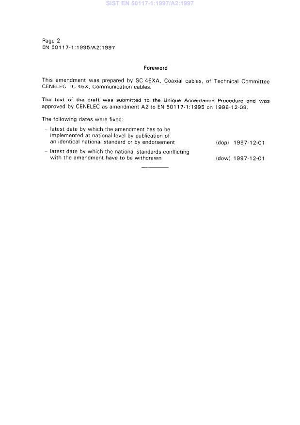 Ta slovenski standard je istoveten z: EN 50117-1:1995/A2:1997