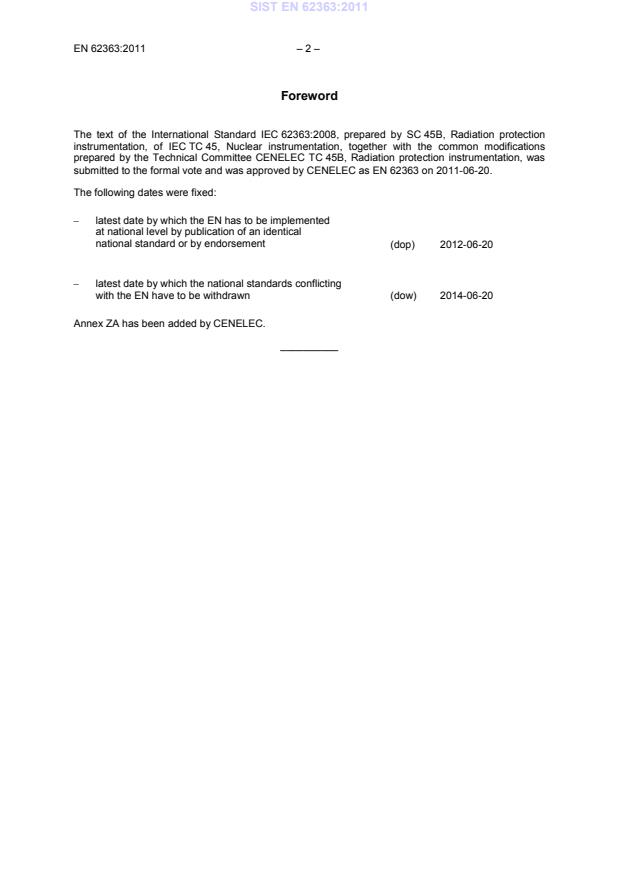 EN 62363:2011 (adoption of IEC 62363:2008, modified) is a European standard for radiation protection instrumentation covering portable and transportable photon contamination meters and monitors. It applies to instruments intended for the direct measurement or detection of surface contamination by photon-emitting radionuclides. The standard sets out general characteristics, test conditions, radiation and electrical requirements, environmental characteristics, and documentation (including the required identification certificate) to ensure reliable, repeatable performance of contamination meters and monitors.
