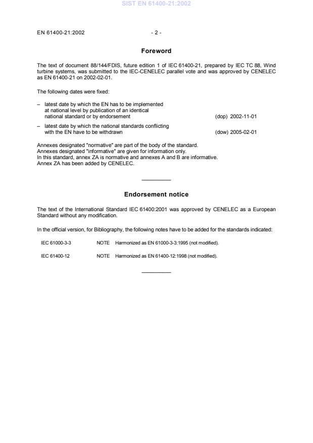Ta slovenski standard je istoveten z: EN 61400-21:2002