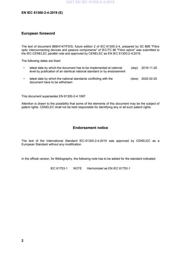 Endorsement notice The text of the International Standard IEC 61300-2-4:2019 was approved by CENELEC as a European Standard without any modification.