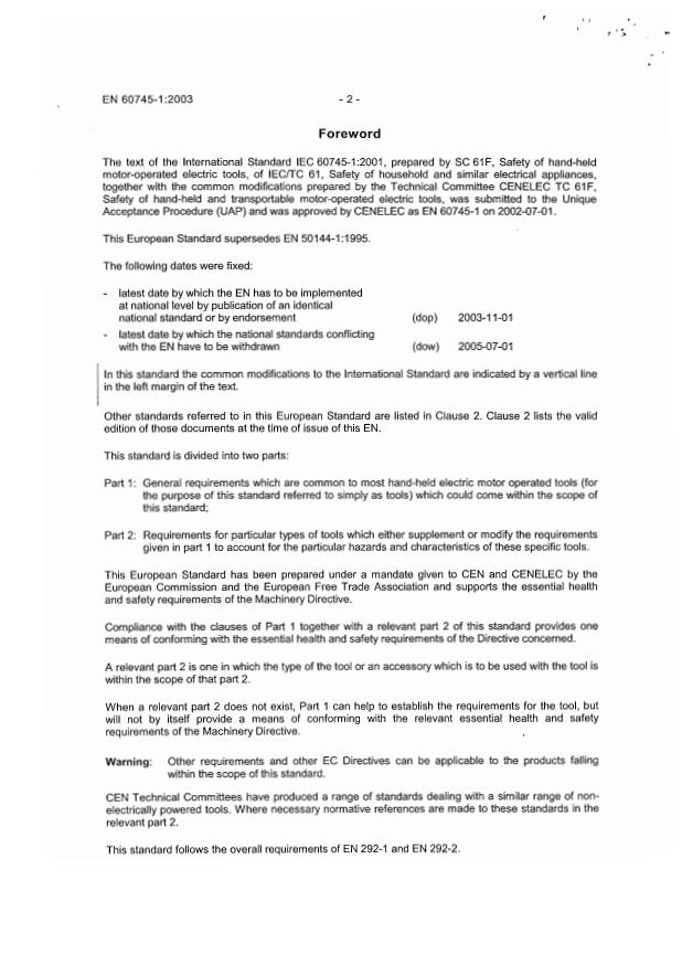 EN 60745-1:2006 - Hand-held motor-operated electric tools - Safety - Part 1: General requirements - Effective Date