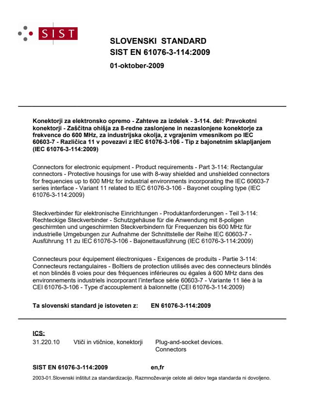 Ta slovenski standard je istoveten z: EN 61076-3-114:2009