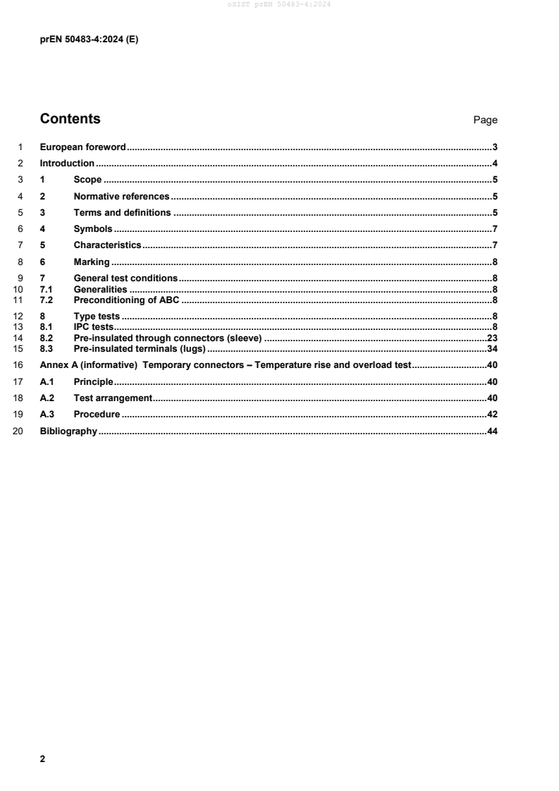 The main goal of this document is to specify type test procedures for connectors used to electrically join ABC conductors, ensuring reliable performance and safety under normal operating conditions. The connectors covered include those installed on main and branch aerial cables governed by HD 626 standards.
