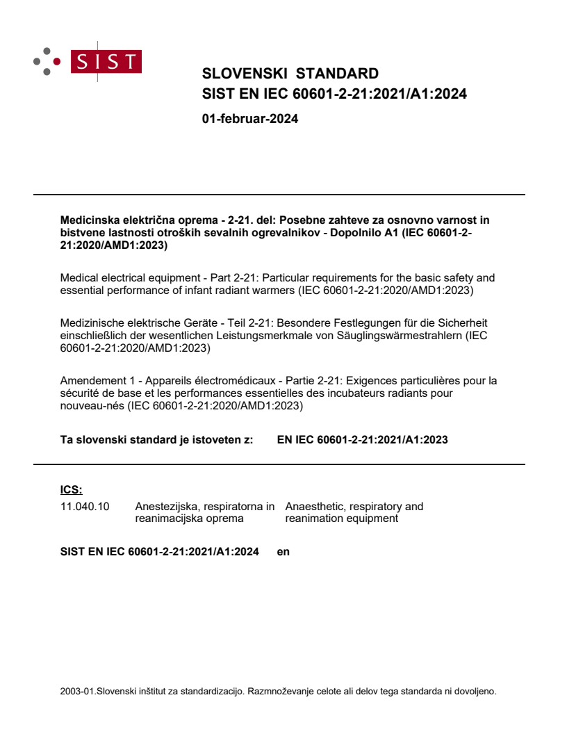 EN IEC 60601-2-21:2021/A1:2023
