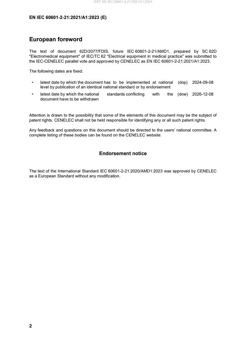 This amendment A1 modifies the European Standard EN IEC 60601-2-21:2021; it was approved by CENELEC on 2023-12-08. CENELEC
