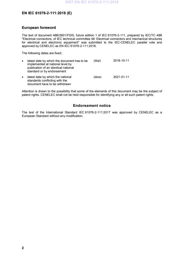 Endorsement notice The text of the International Standard IEC 61076-2-111:2017 was approved by CENELEC as a European Standard without any modification.