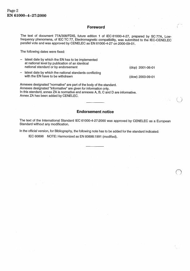 EN 61000-4-27:2000 has the following relationships with other standards: It is inter standard links to EN 61000-4-27:2000/A2:2025, EN 61000-4-27:2000/A1:2009. Understanding these relationships helps ensure you are using the most current and applicable version of the standard.