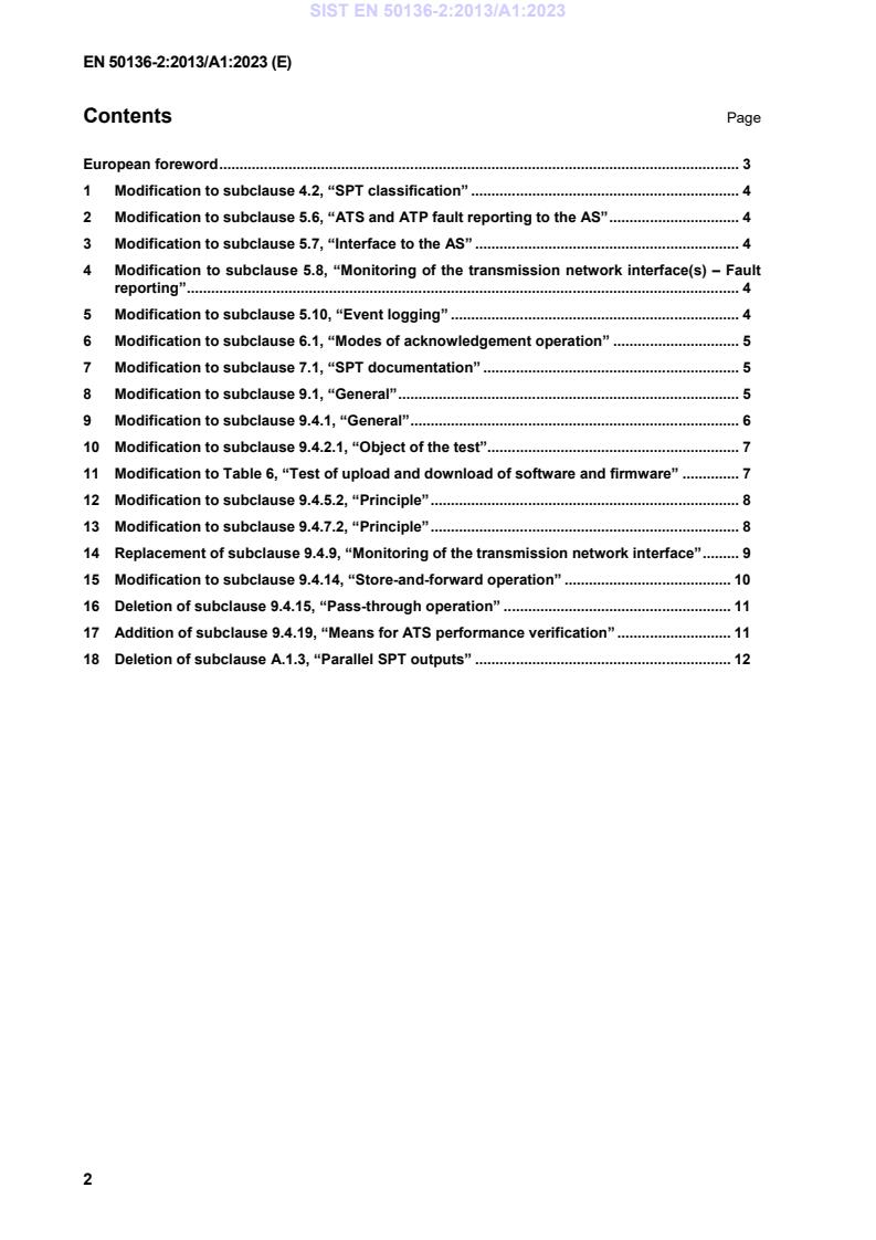EN 50136-2:2013/A1:2023 (CLC) specifies requirements for Supervised Premises Transceiver (SPT) devices used in alarm transmission systems (ATS). The amendment A1 (2023) updates the original Part 2 (2013) to reflect current practice and correct errors. The standard covers functional, reliability, resilience, security and safety characteristics of SPTs whether they are stand‑alone devices or integrated into alarm systems. It also addresses SPTs that share interconnection, control, communication and power with other applications.