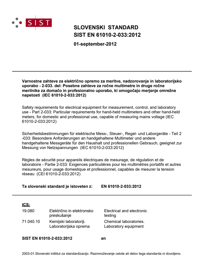 Ta slovenski standard je istoveten z: EN 61010-2-033:2012
