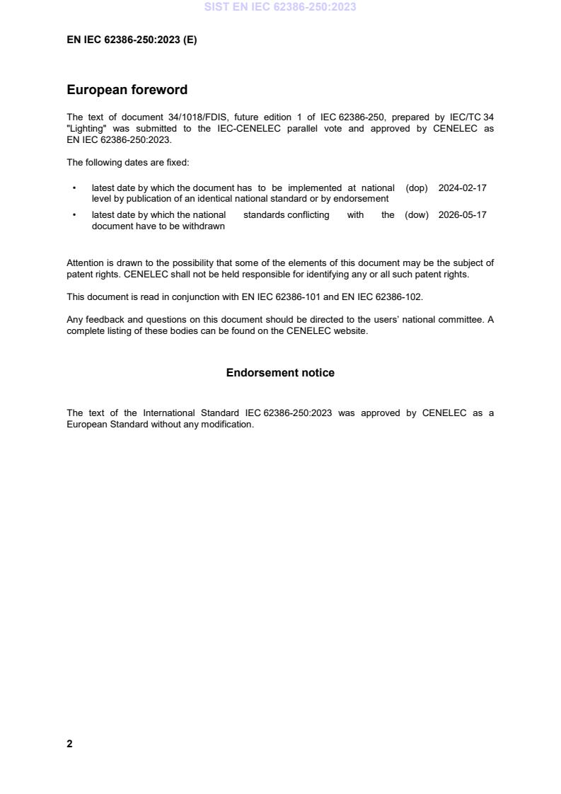 - Conformance and normative references - designed to be used in conjunction with EN IEC 62386-101:2022, EN IEC 62386-102:2022 and related parts (Annex ZA).