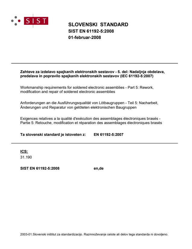 Ta slovenski standard je istoveten z: EN 61192-5:2007