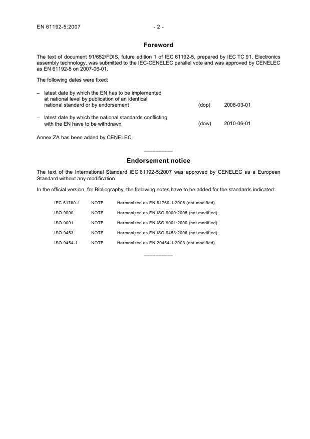 The text of the International Standard IEC 61192-5:2007 was approved by CENELEC as a European