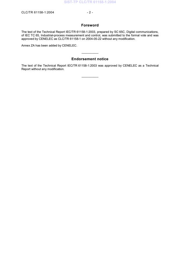 The text of the Technical Report IEC/TR 61158-1:2003 was approved by CENELEC as a Technical