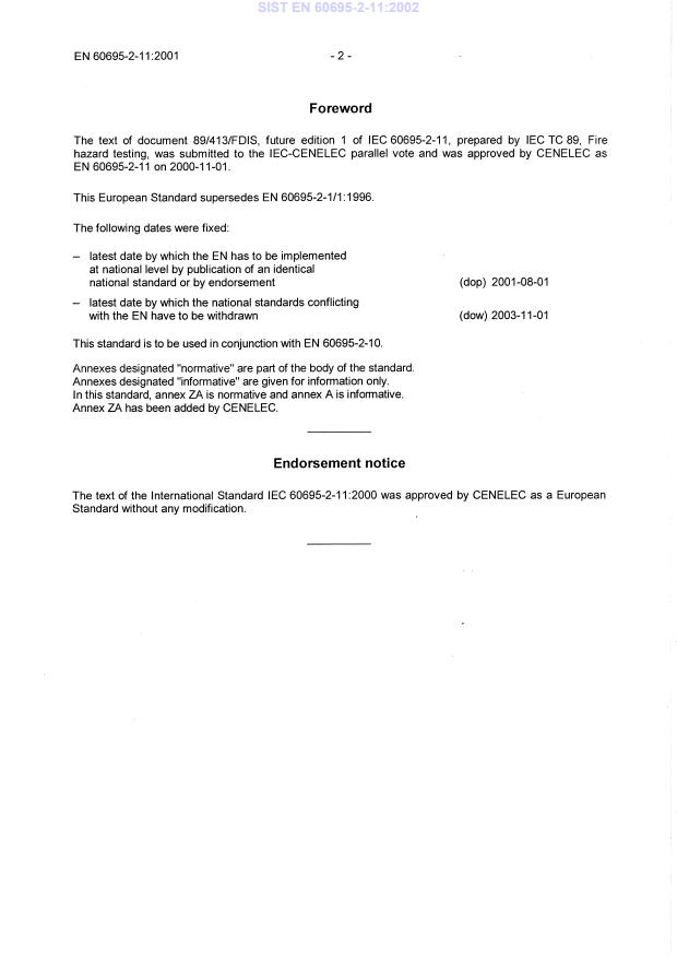EN 60695-2-11:2001 has the following relationships with other standards: It is inter standard links to EN 60695-2-1/1:1996, EN 60695-2-11:2014, EN ISO 13943:2000, EN 60695-2-2:1994, EN 62109-1:2010, EN 61811-11:2003, EN 62052-21:2004, EN 60320-1:2015, EN 62094-1:2003, EN 60947-2:2006, EN IEC 62040-1:2019, EN 60400:2017, EN 60335-1:2012, EN 62477-1:2012, EN 61535:2009. Understanding these relationships helps ensure you are using the most current and applicable version of the standard.