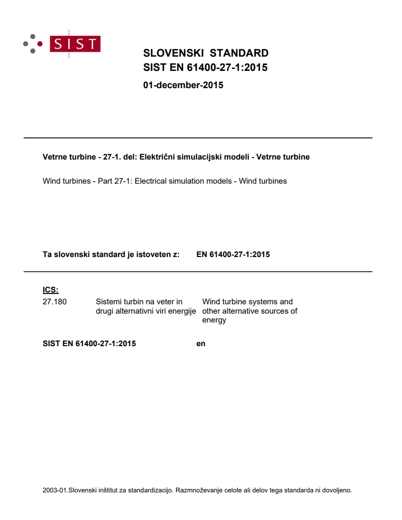 Ta slovenski standard je istoveten z: EN 61400-27-1:2015