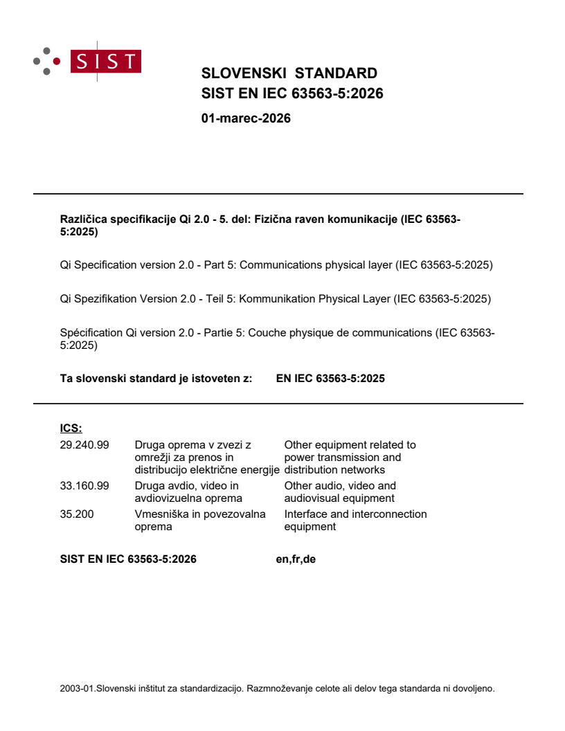 Različica specifikacije Qi 2.0 - 5. del: Fizična raven komunikacije (IEC 63563-5:2025)