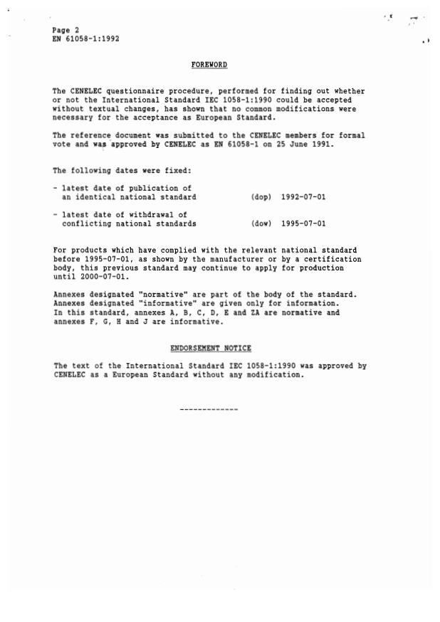 EN following parallel vote * D96/132: CECC/SC 23JX disbanded * Superseded by EN 61058-1:2002
