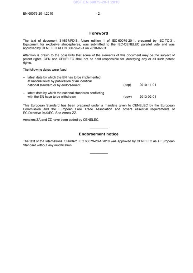 Ta slovenski standard je istoveten z: EN 60079-20-1:2010