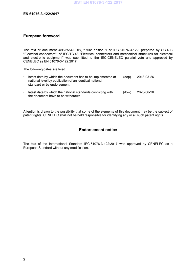 The text of the International Standard IEC 61076-3-122:2017 was approved by CENELEC as a