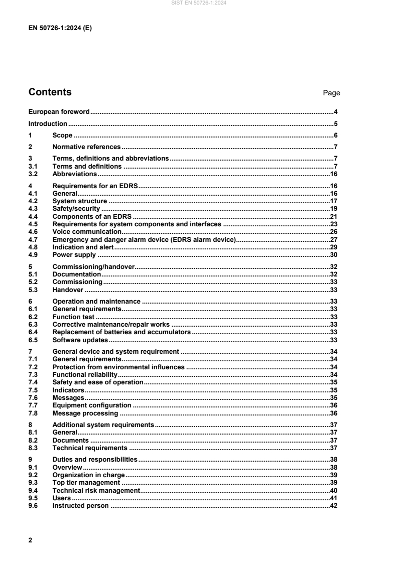 - Integration constraints: EN 50726-1 does not replace standards for fire safety, intrusion/security systems or national call-system standards but provides guidance for integrating those systems into an EDRS.