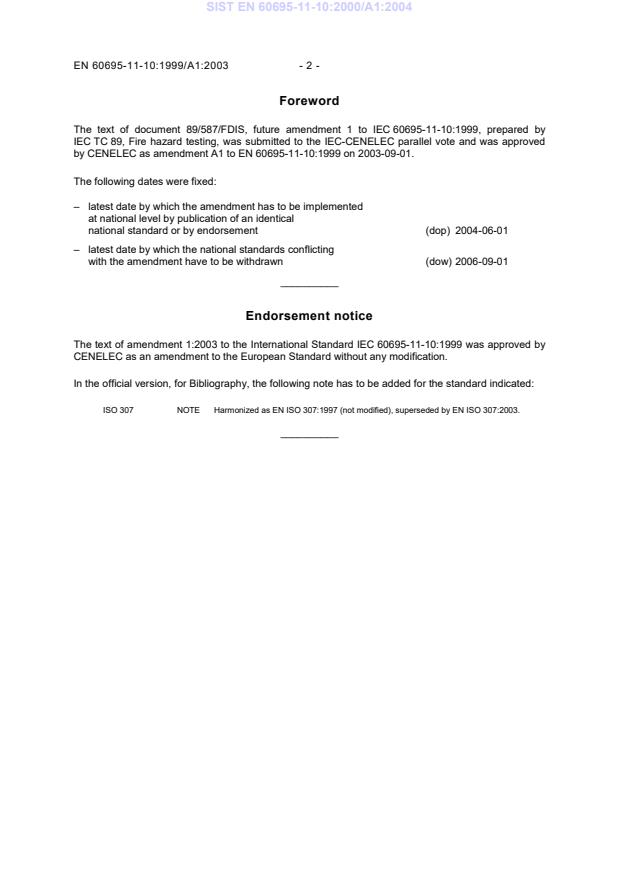 by CENELEC as amendment A1 to EN 60695-11-10:1999 on 2003-09-01.