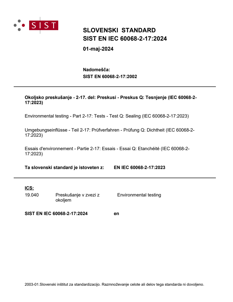 Ta slovenski standard je istoveten z: EN IEC 60068-2-17:2023