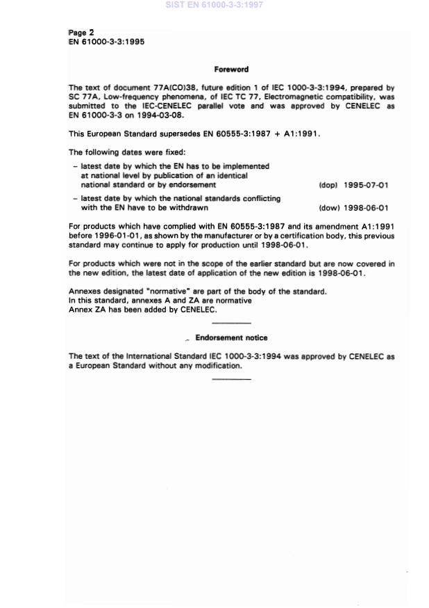 EN following parallel vote * Supersedes EN 60555-3:1987 + A1:1991 * Corrigendum to EN issued July 1997 (new dow) * Superseded by EN 61000-3-3:2008