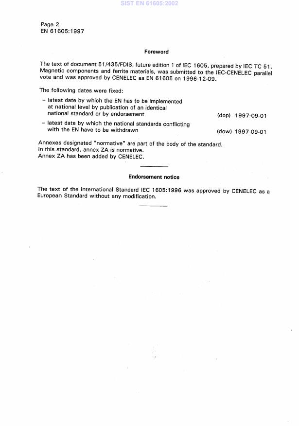 Ta slovenski standard je istoveten z: EN 61605:1997