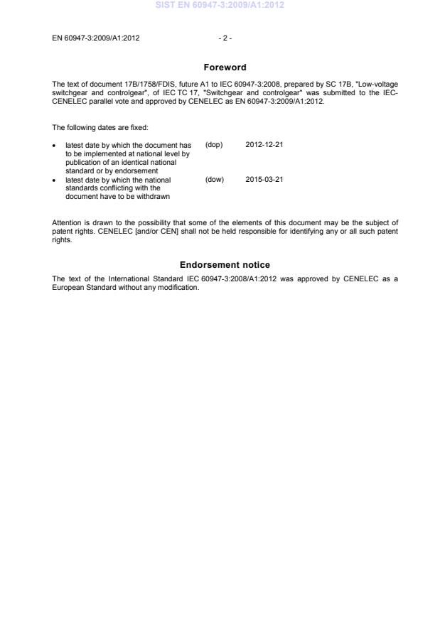 This amendment A1 modifies the European Standard EN 60947-3:2009; it was approved by CENELEC on 2012-