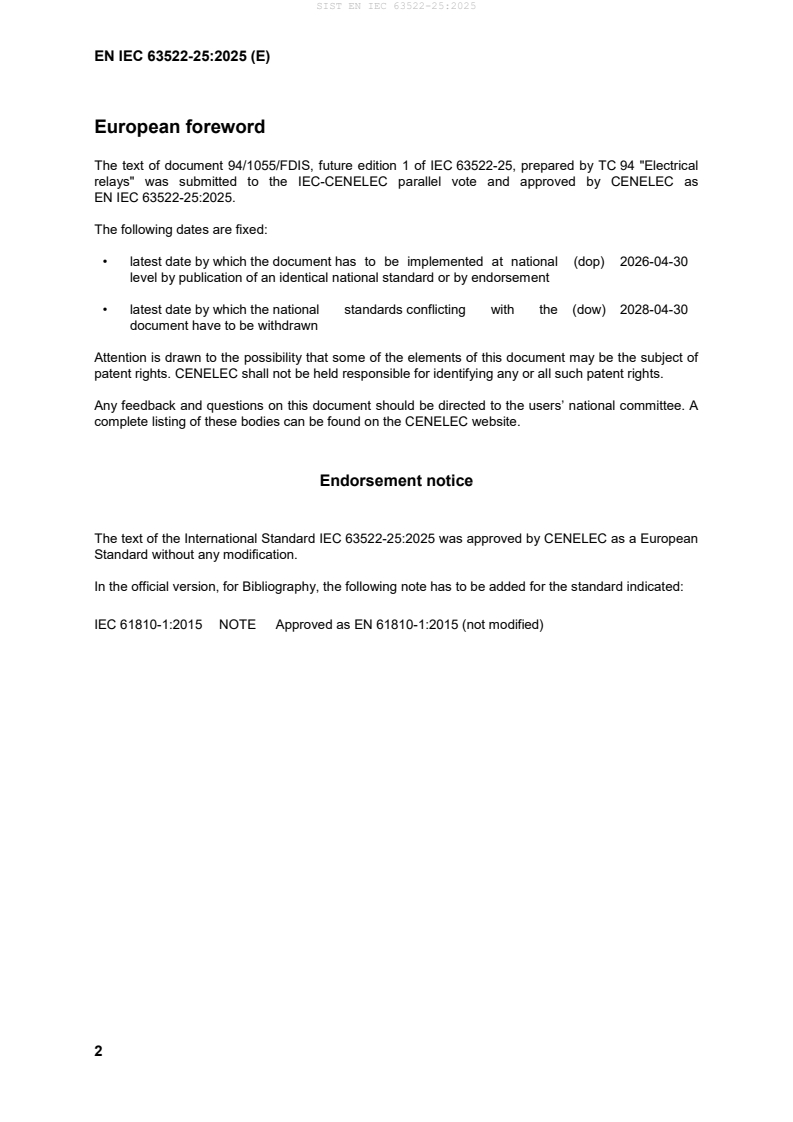 prEN IEC 63522-0:2025 - Electrical relays - Tests and measurements - Part 0: General and guidance - Effective Date