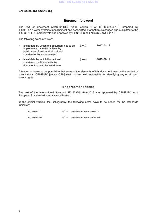 Endorsement notice The text of the International Standard IEC 62325-451-6:2016 was approved by CENELEC as a European Standard without any modification. In the official version, for Bibliography, the following notes have to be added for the standards indicated: IEC 61968-11 NOTE Harmonized as EN 61968-11. IEC 61970-301 NOTE Harmonized as EN 61970-301.