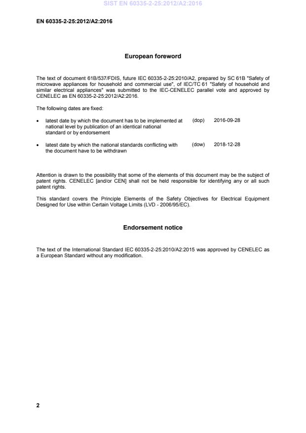 This amendment A2 modifies the European Standard EN 60335-2-25:2012; it was approved by CENELEC on 2015-12-28. CENELEC