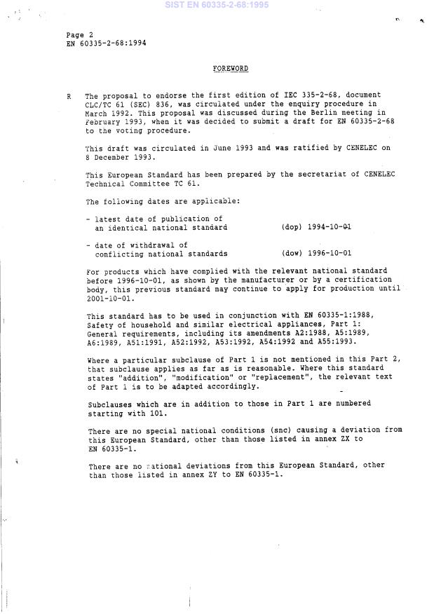 Ta slovenski standard je istoveten z: EN 60335-2-68:1994