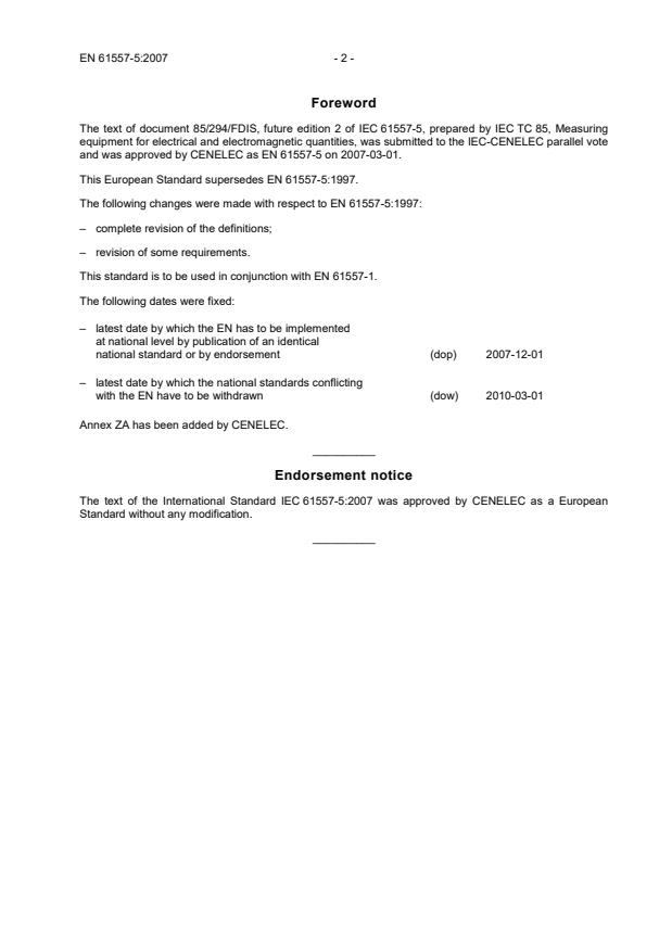 ICS 17.220.20; 29.080.01; 29.240.01 Supersedes EN 61557-5:1997