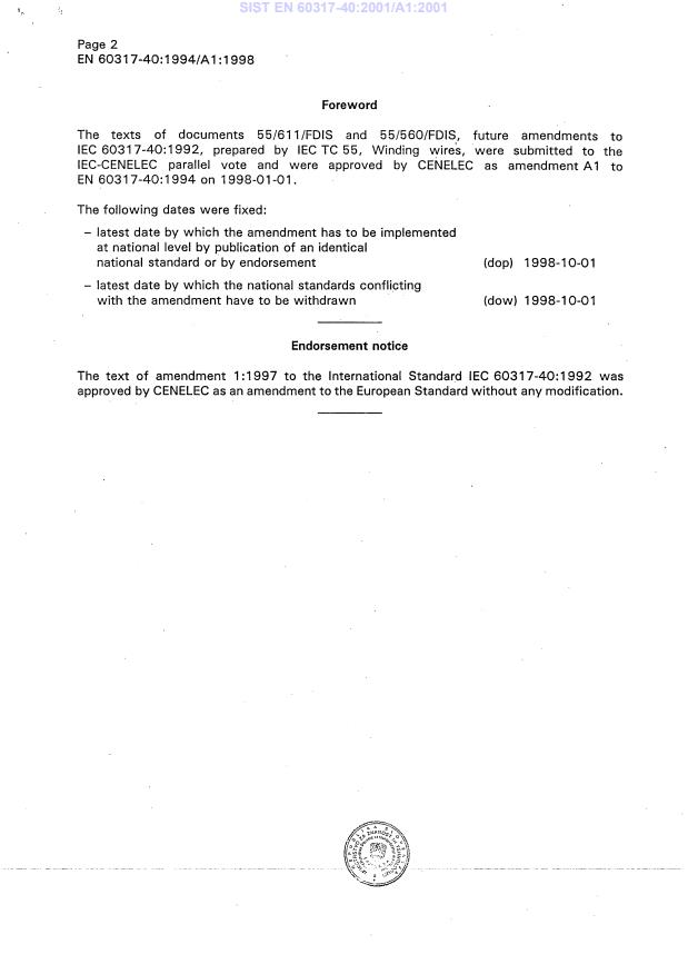 EN 60317-40:1994/A1:1998 is classified under the following ICS (International Classification for Standards) categories: 29.060.10 - Wires. The ICS classification helps identify the subject area and facilitates finding related standards.