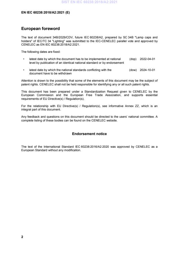 This amendment A2 modifies the European Standard EN IEC 60238:2018; it was approved by CENELEC on 2020-02-24. CENELEC