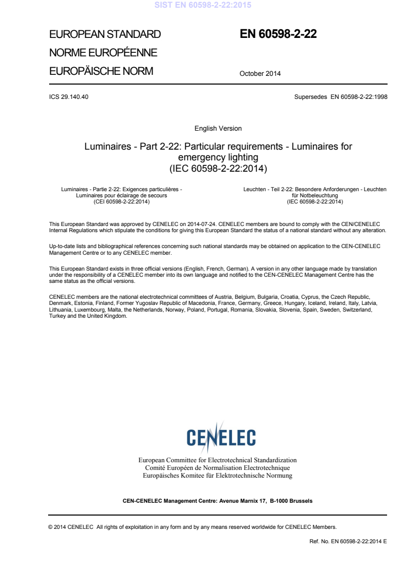 Ref. No. EN 60598-2-22:2014 E
