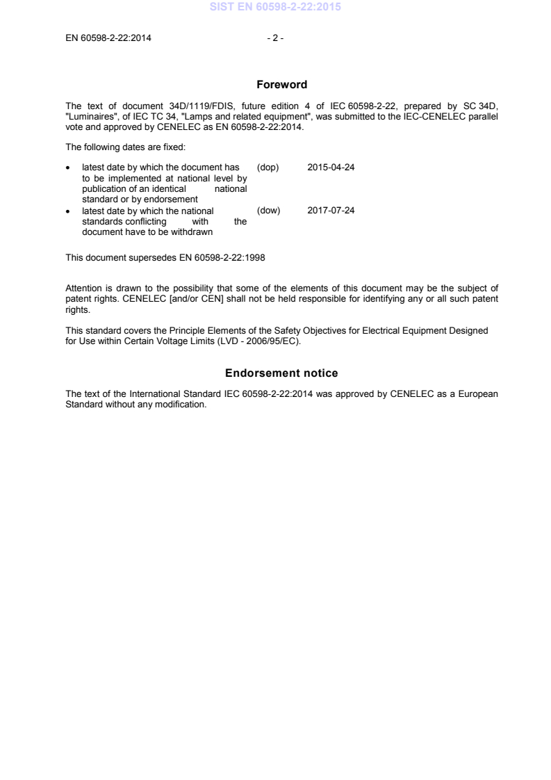 vote and approved by CENELEC as EN 60598-2-22:2014.