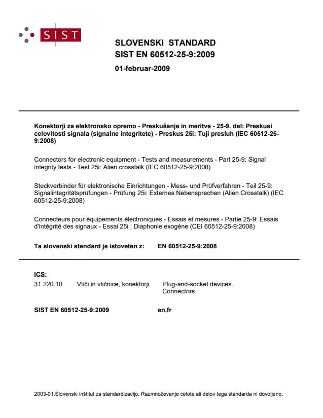 Ta slovenski standard je istoveten z: EN 60512-25-9:2008