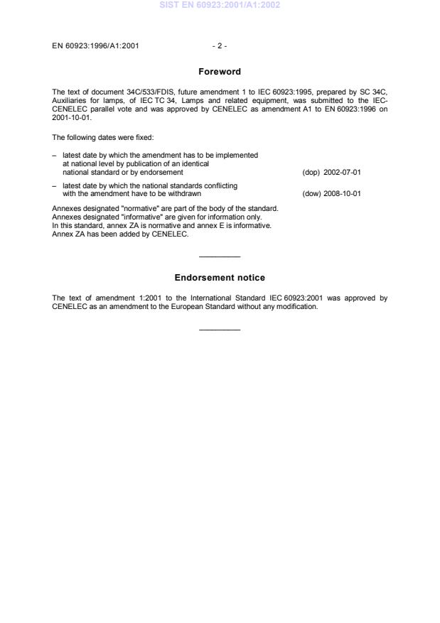 Ta slovenski standard je istoveten z: EN 60923:1996/A1:2001