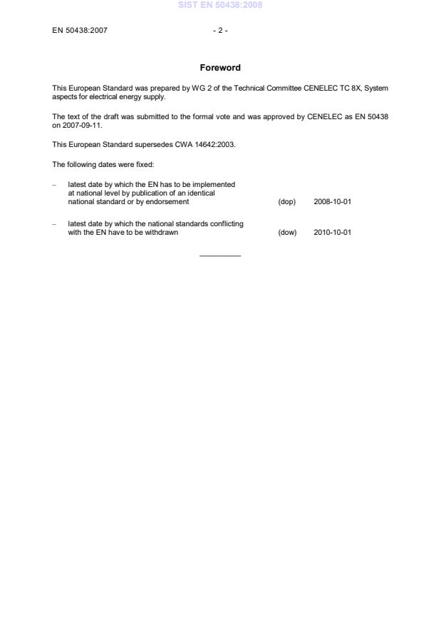 Ta slovenski standard je istoveten z: EN 50438:2007