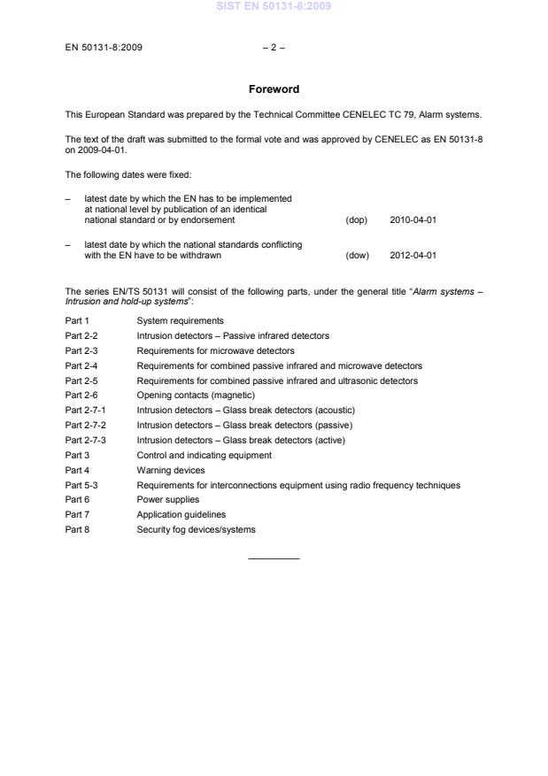 Ta slovenski standard je istoveten z: EN 50131-8:2009