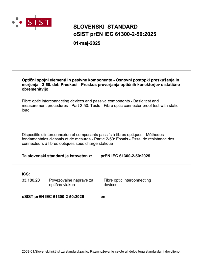 Ta slovenski standard je istoveten z: prEN IEC 61300-2-50:2025